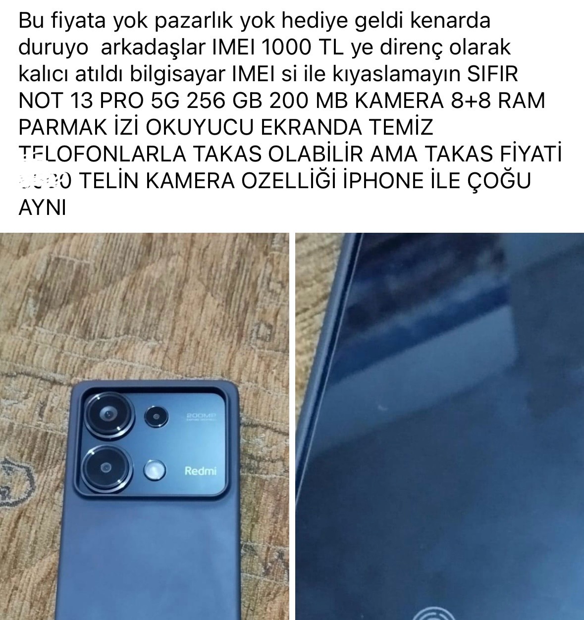 Xaomi Redmi Not 13 Pro 8 + 4Ram 256 Hafıza 2oo mx kamera kutu faturalı chaz